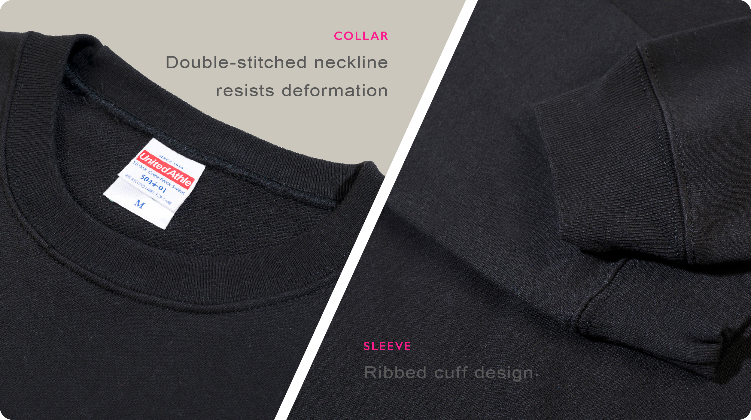 Double-needle stitching at the collar, cuffs, and hem