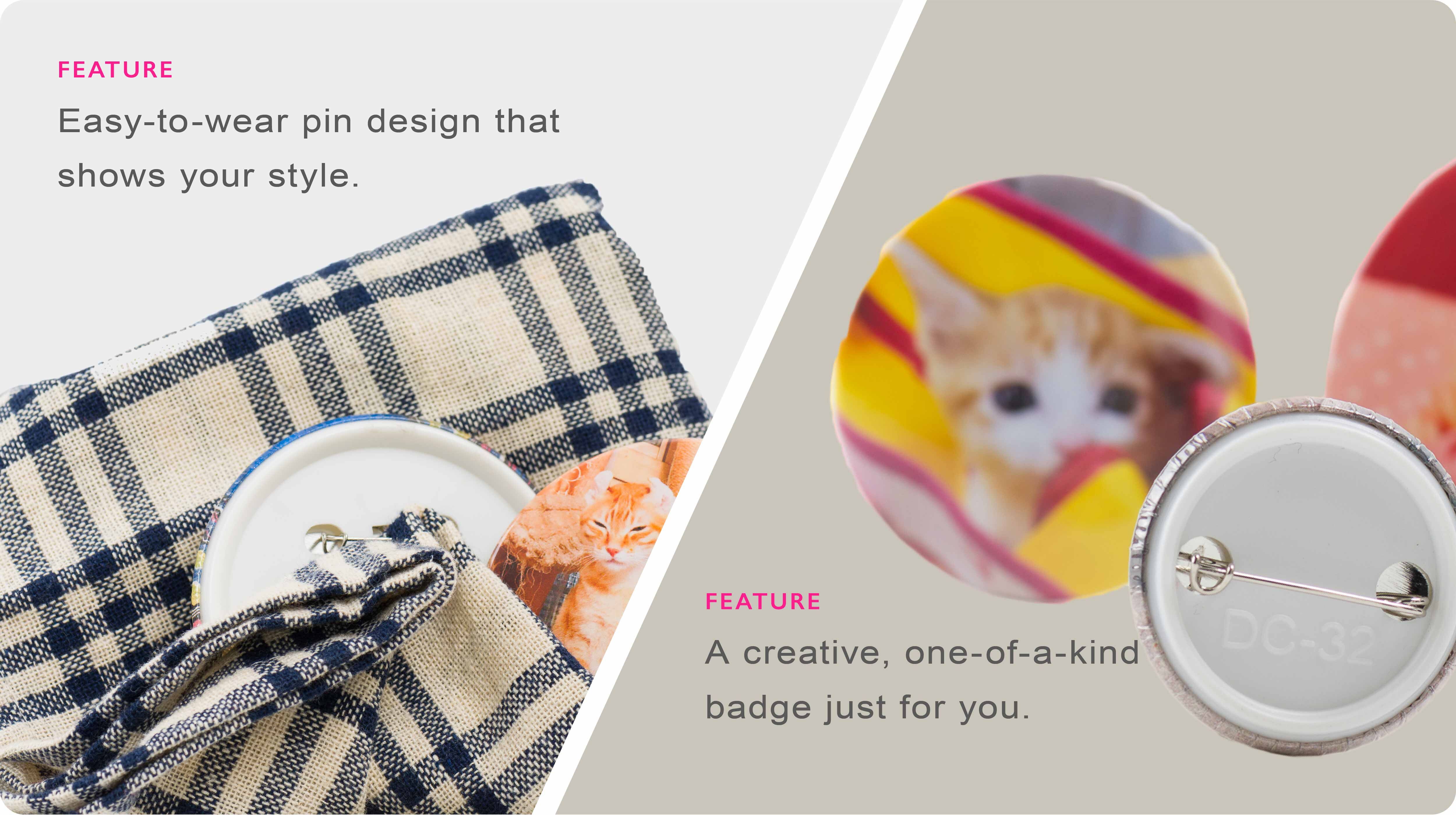 Plastic front and back, handcrafted by Taiwanese artisans Simple and practical pin-back design